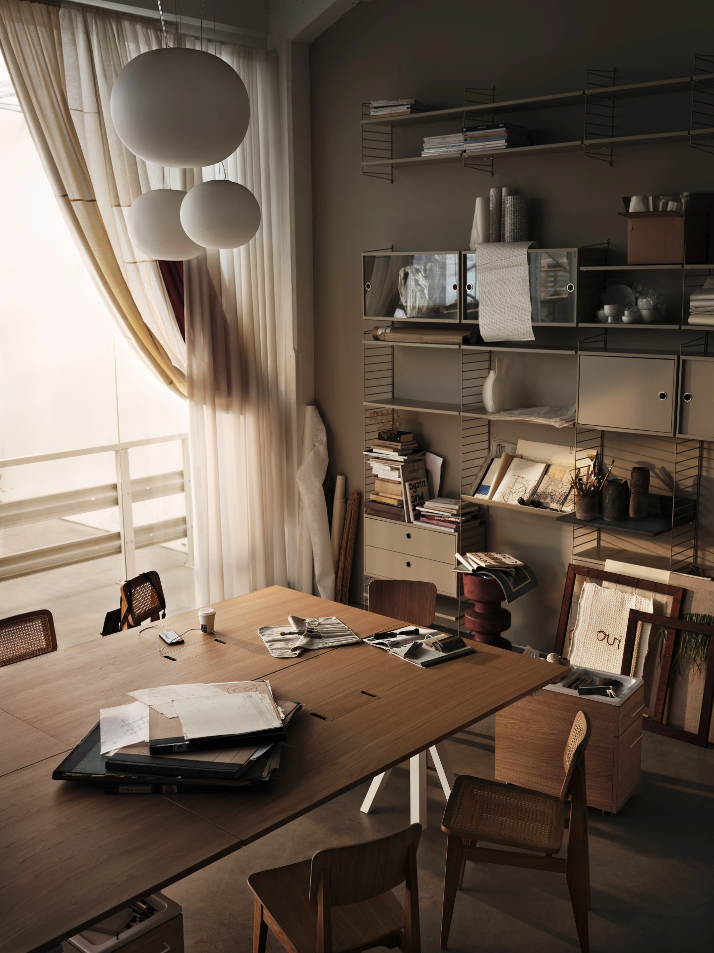這種從不為變而變的設計態度,讓 String 成為少數能真正跨越時間的家具。搭配近年導入的戶外材質、Works 辦公模組、Kitchen 廚房配件與 Museum 系列產品,String 更能適應從玄關到浴室、從陽台到書房的每一種日常空間。