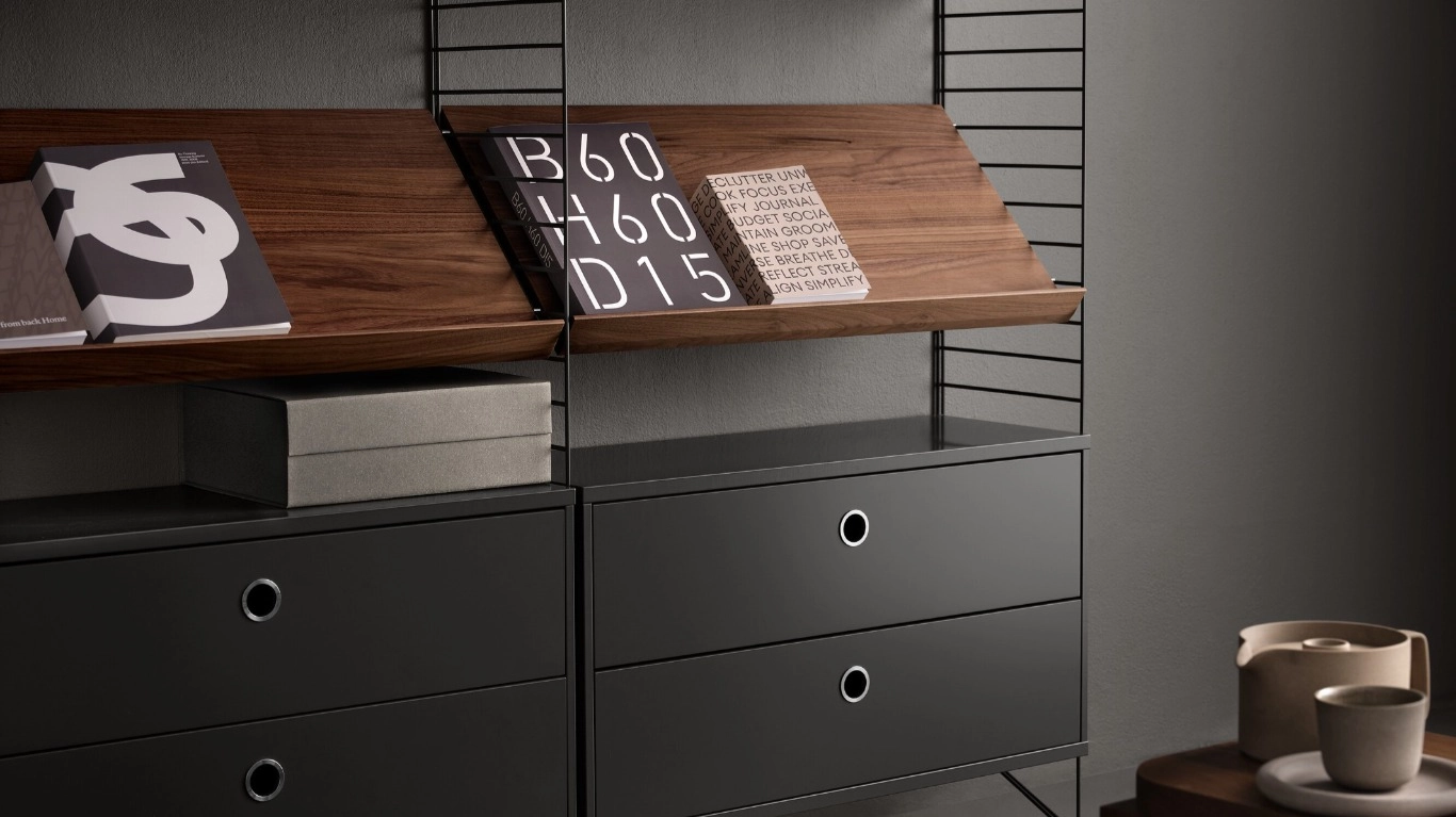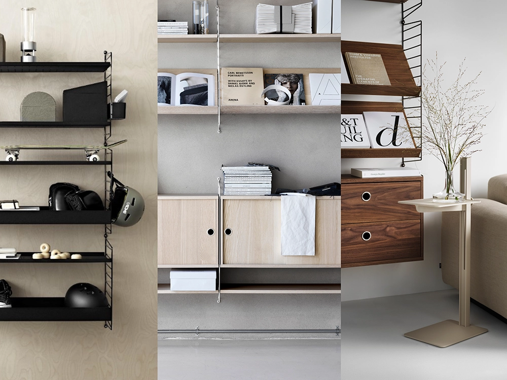1949 年,瑞典設計師 Nils 和 Kajsa Strinning 以金屬側架與木質層板組合成一組簡潔靈活的書架,奪得出版社 Bonnier 書櫃設計比賽首獎,這組架子就是日後聞名世界的 String 系統模組化家具。