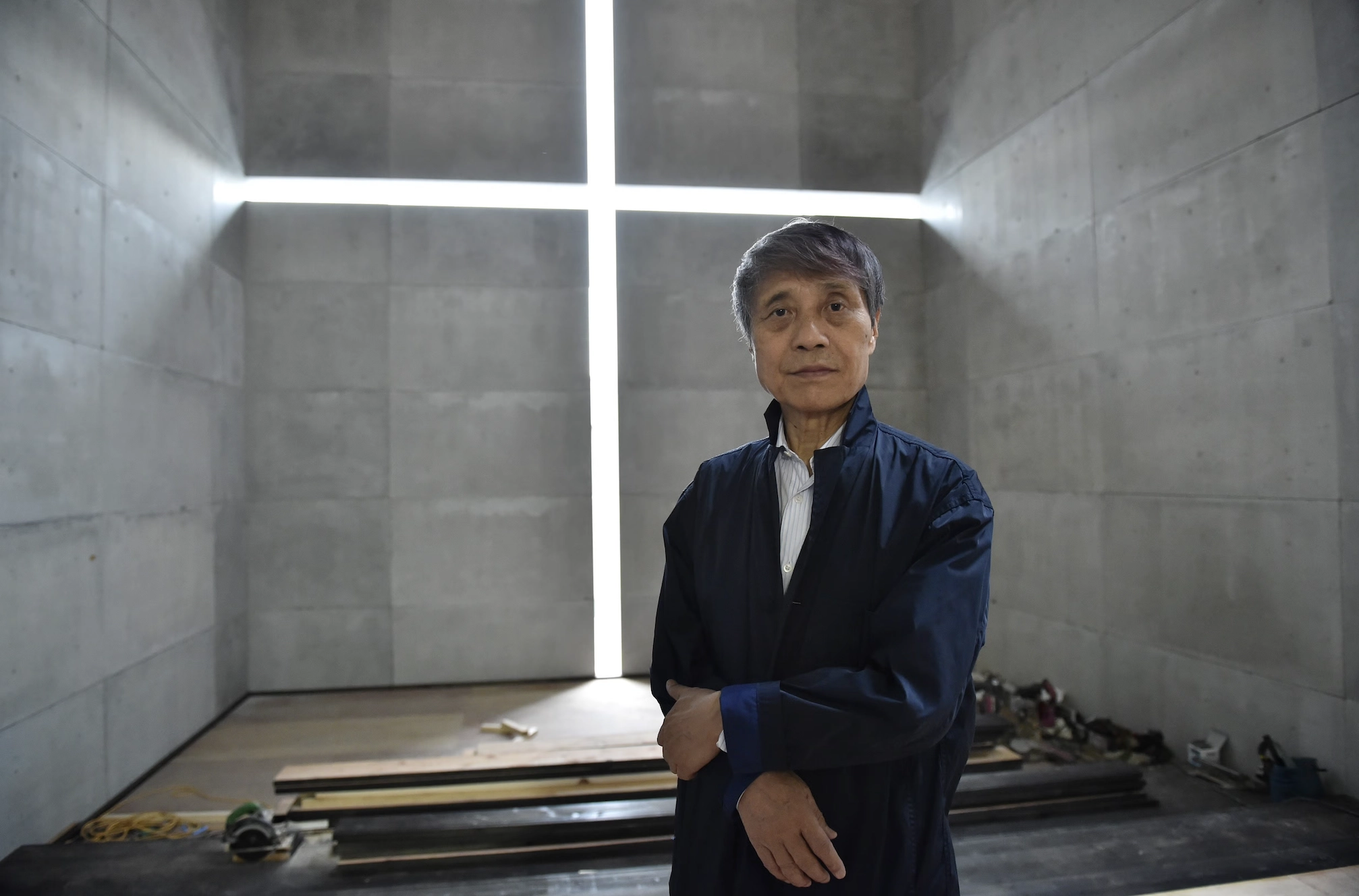 光之教堂: 沒有多餘裝飾,光的位置就是語言本身。十字光縫替空間寫下沉靜與祈念。