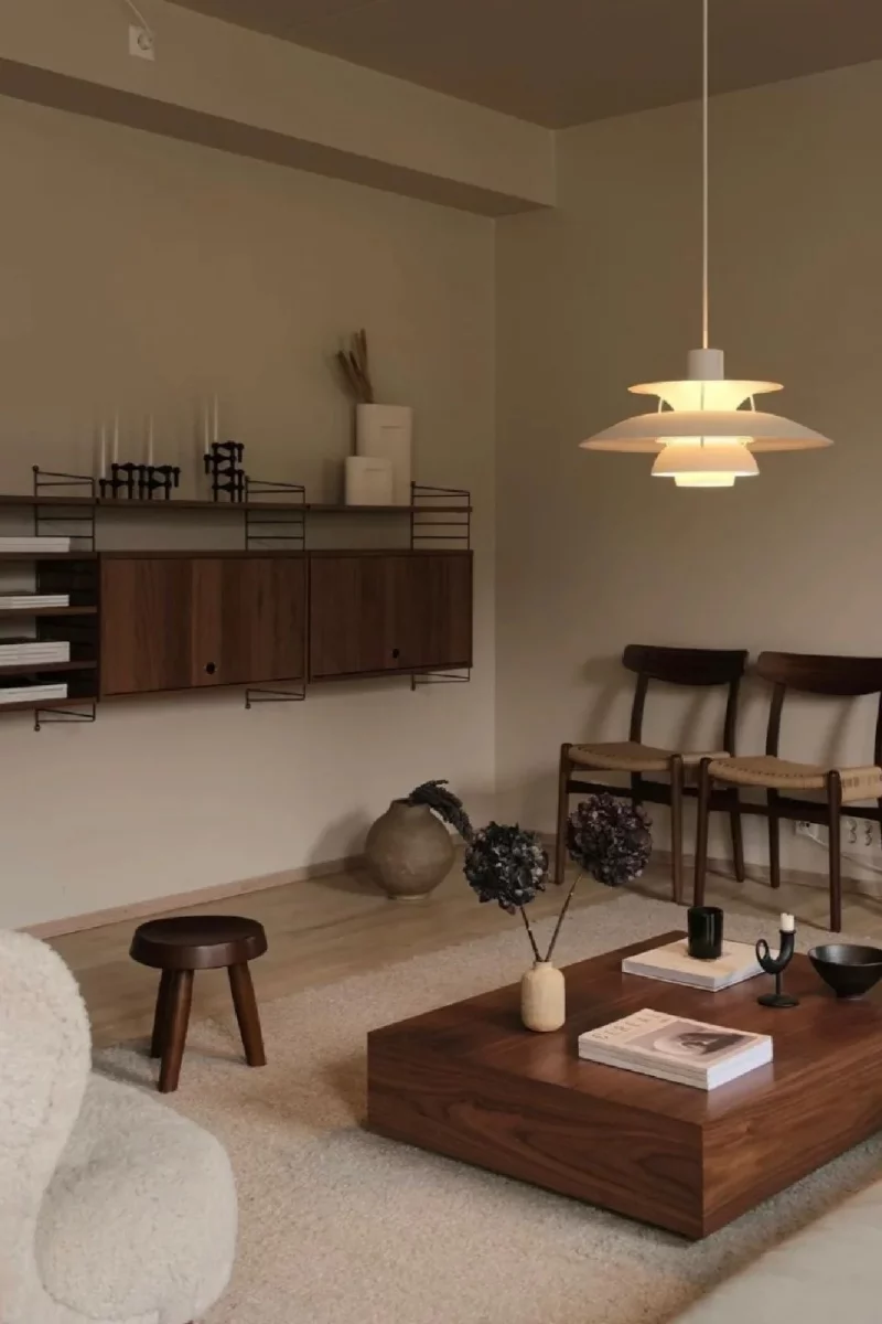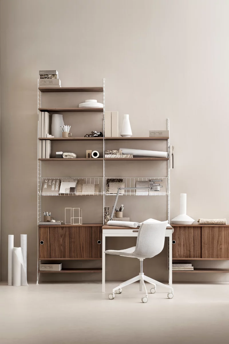 柔白、灰階、木紋與金屬,是 String 經典的冬日比例。