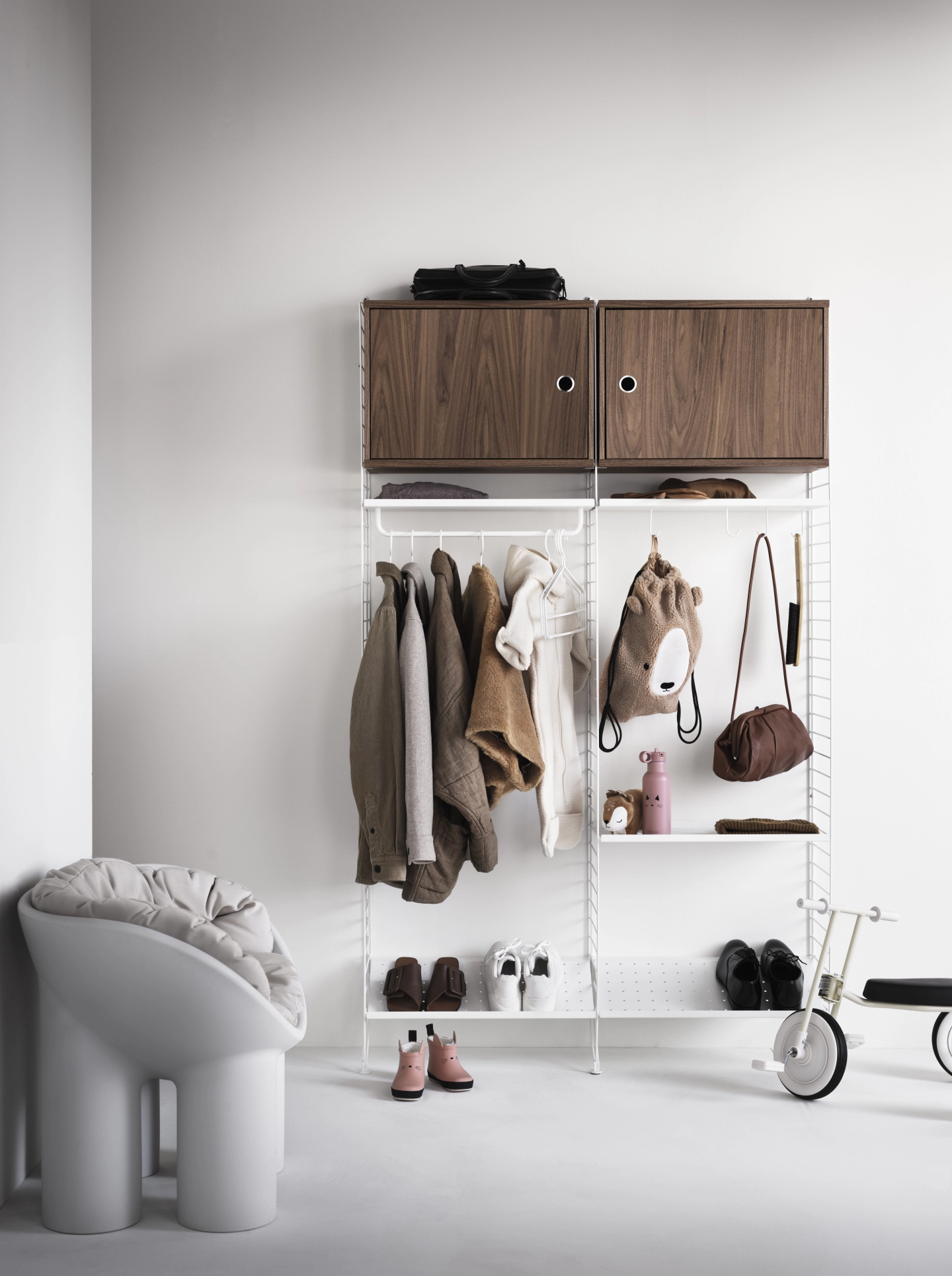 String Furniture 的 Hallway 系列為玄關設計帶來極致的靈活性和功能性。它結合了 String 系統的經典模組設計,讓您能輕鬆打造出符合個人需求的收納空間。