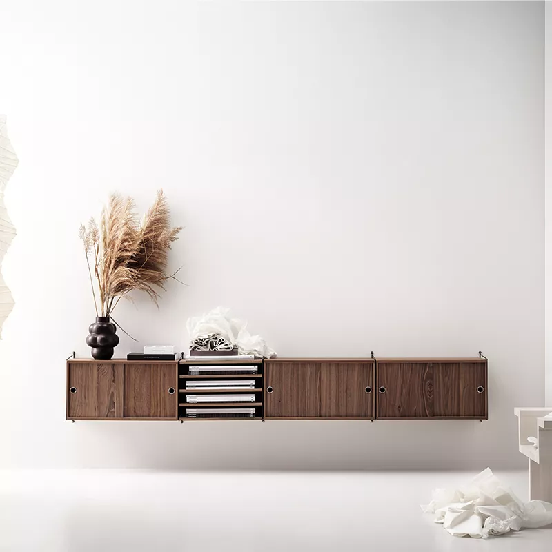 String system 的 Livingroom 系列為您打造靈活且時尚的收納空間,以模組化設計輕鬆適應不同需求。簡約優雅的組合讓客廳既整潔又充滿個人風格,實現多功能與高級質感的完美結合。