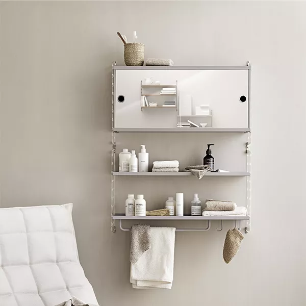 String system 的 Bathroom 系列以靈活的收納設計和抗潮耐用材質,讓浴室空間整潔又時尚,簡約架構易於清潔,輕鬆打造符合個人需求的衛浴收納解決方案。