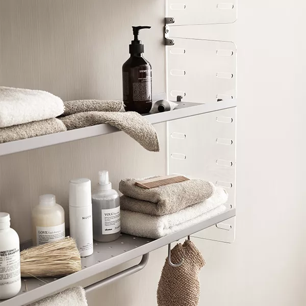 String system 的 Bathroom 系列以靈活的收納設計和抗潮耐用材質,讓浴室空間整潔又時尚,簡約架構易於清潔,輕鬆打造符合個人需求的衛浴收納解決方案。