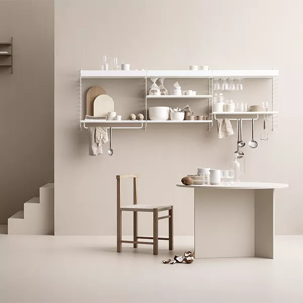 String system 的 Kitchen 系列以模組化設計提供靈活的收納方案,滿足廚房空間的不同需求。其簡約實用的風格兼顧美觀與功能,讓廚房整潔有序,便於使用。