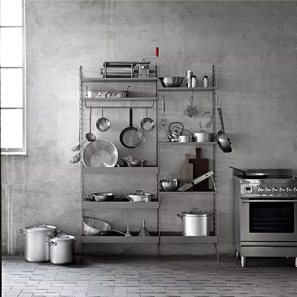 String system 的 Kitchen 系列以模組化設計提供靈活的收納方案,滿足廚房空間的不同需求。其簡約實用的風格兼顧美觀與功能,讓廚房整潔有序,便於使用。